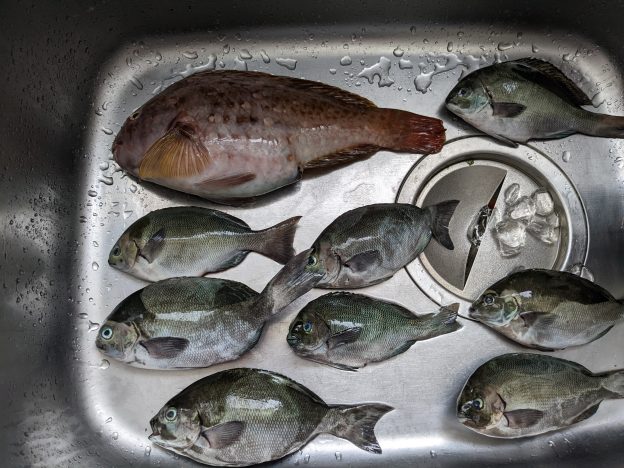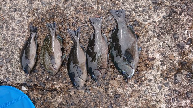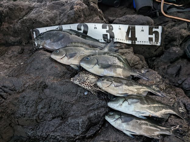 釣果:メジナ15匹・(イシガキダイ1匹) サイズ:25~35cm・(25cm)